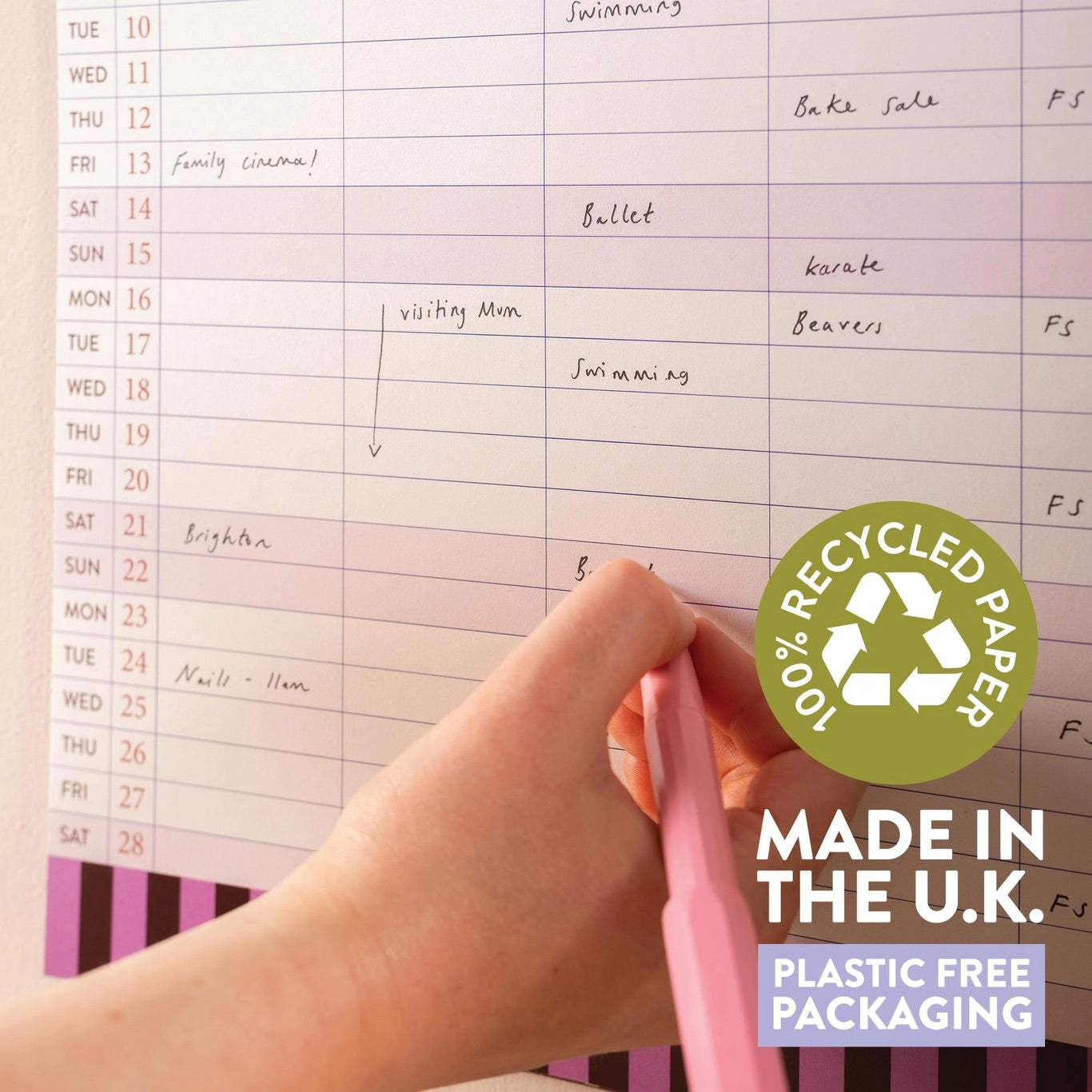 Month-to-view layout with a clear, easy-to-write-in date grid