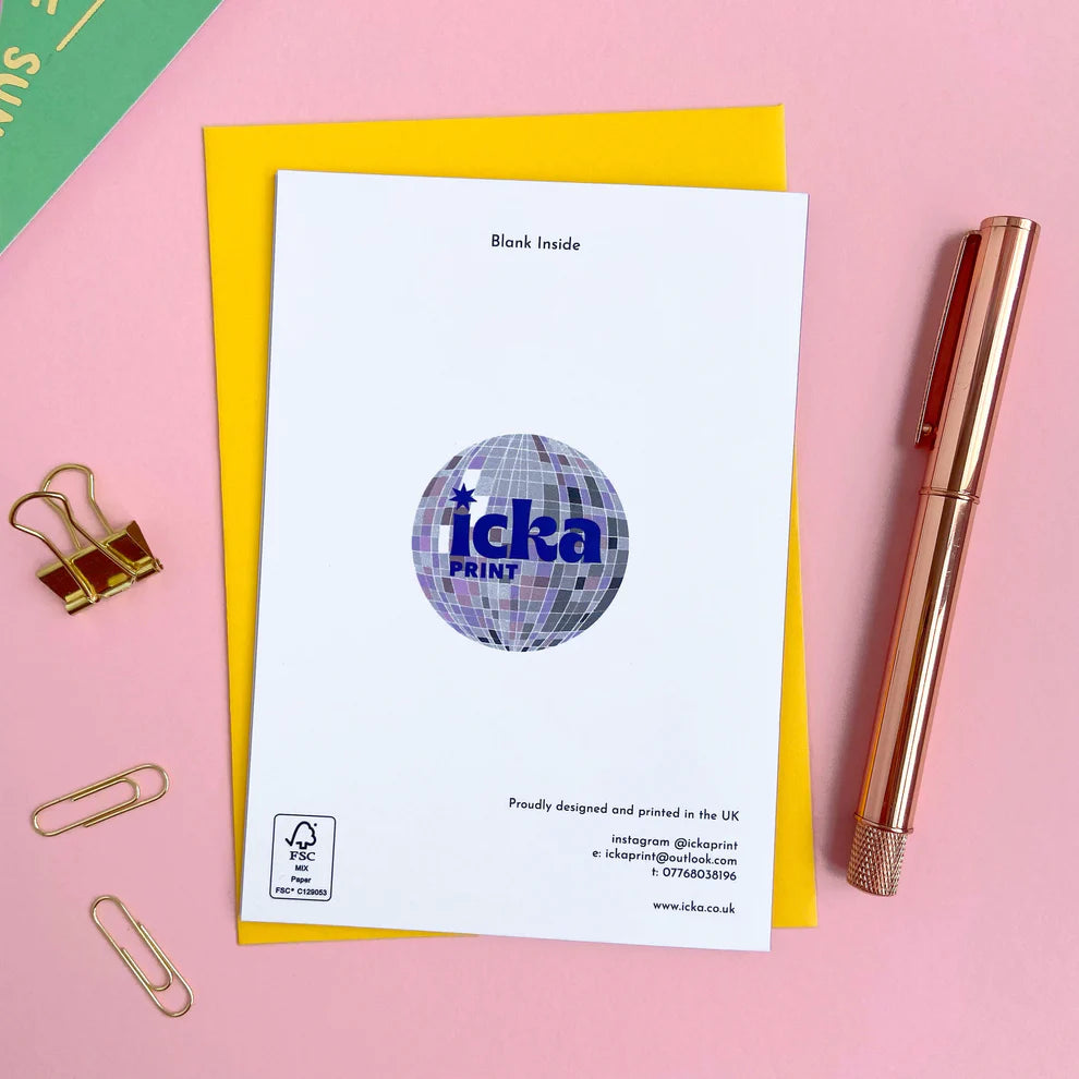 Great, fun card from Ickaprint featuring a girl on a Disco Ball with the words ' Happy Birthday you wonderful person!'