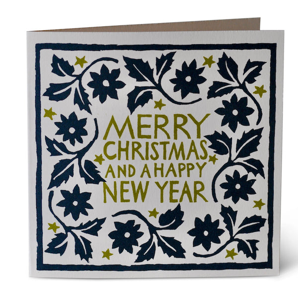 A pack of ten cards with a delightful leaved wreath surrounding the message 'Merry Christmas and a Happy New Year'. On the reverse of the card there is the Cambridge Imprint mark and no other fussy labelling. All our cards are blank inside.